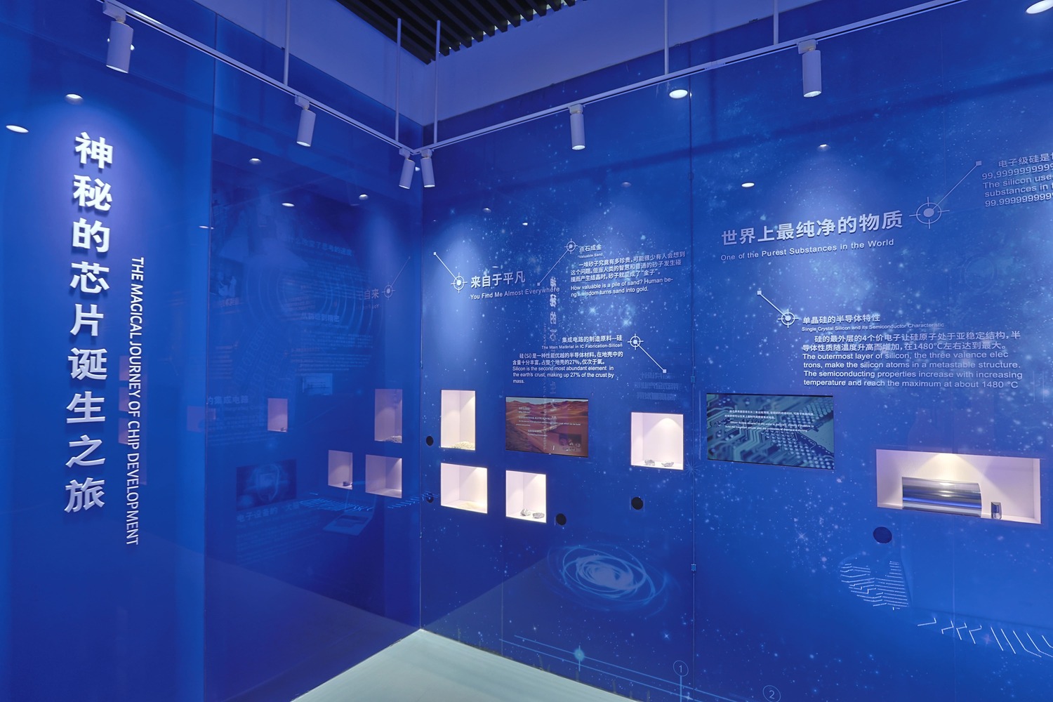在上海集成电路科技馆内,可以通过芯片制造洁净工厂的幻影成像装置,来直观地了解到芯片的“出生地”。建设一座集成电路芯片制造工厂要投资至少数百亿元人民币,主体厂房是四层式的净化车间,支持厂房提供净化空气、特种气体、排气处理。